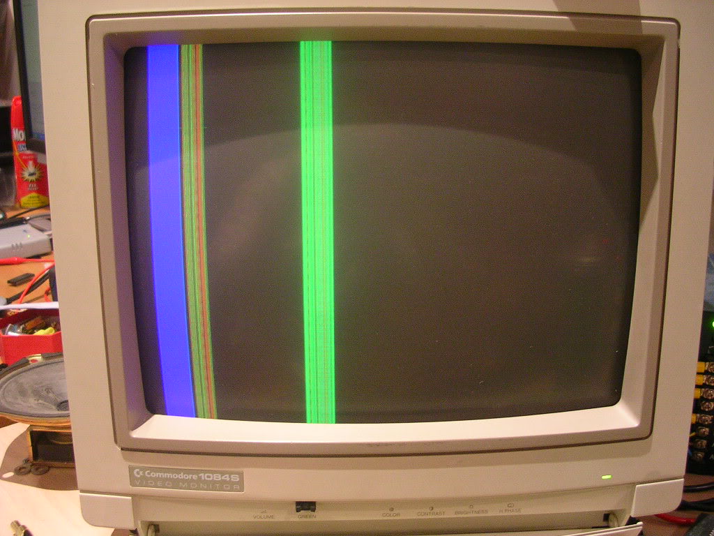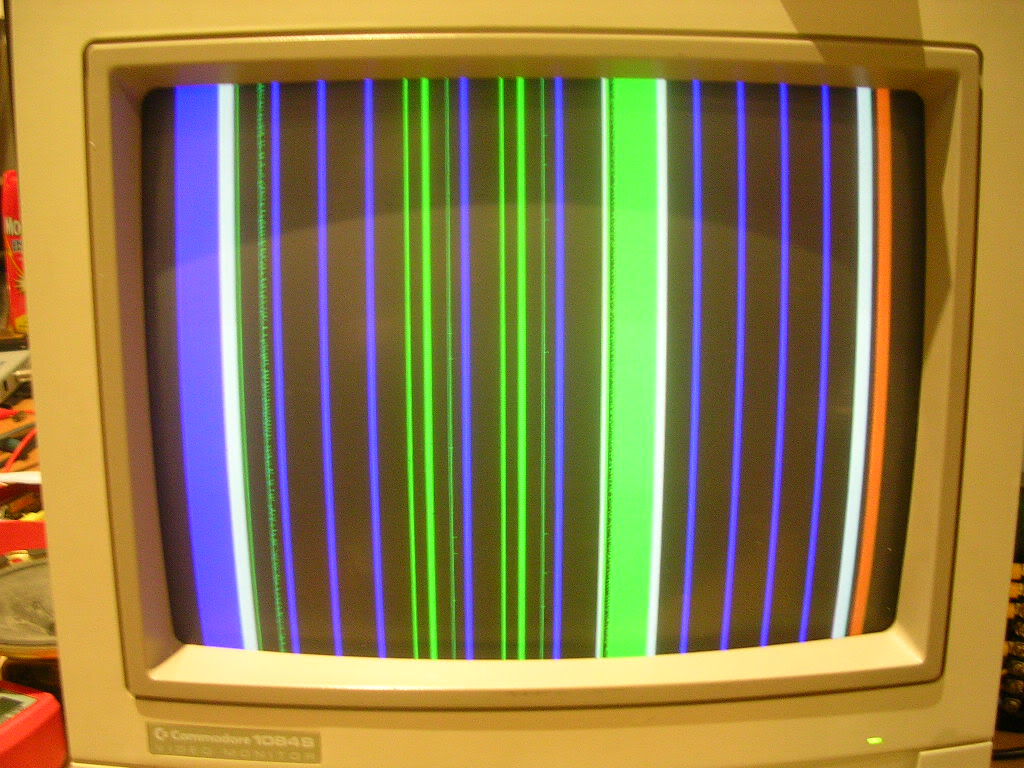Anyway, out of desperation I went around looking at all the chips on the boards, everything looked fine, eventually I found a 74LS374 chip that looked very slightly odd on the scope. If it was interrupted its outputs would crap out totally but when not interrupted they were a bit weaker than I would consider normal. So I desoldered it, found it tested OK but decided to fit a new chip. This also changed nothing but when I then went back over the nearby chips I clearly disturbed something, as soon as I hit one of the pins on an LS273 chip the backdrop flicked up on the screen. This is very suspicious, I would suspect that 273 except I had not been over it a dozen times or more with the probe before hand, its outputs look very good on the scope and the fault is consistently gone. Its been 2 days now with many many reboots of the board and not once has the backdrop failed.