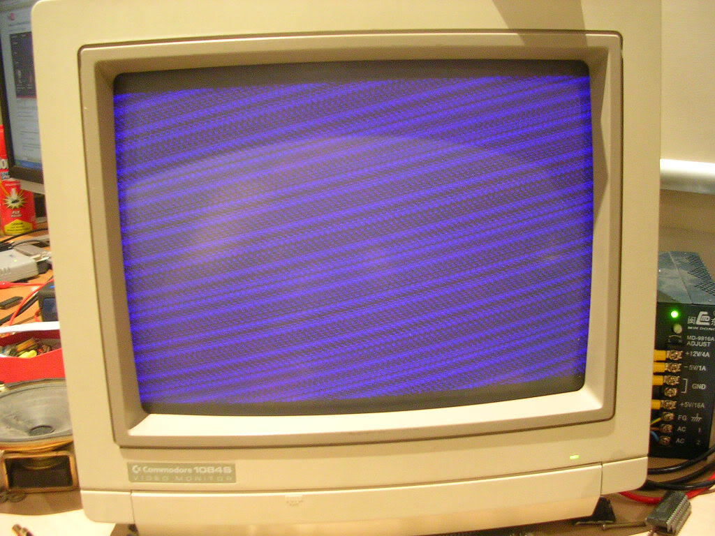 This board was certainly faulty though, on powering up with my old adaptor this is all I got...