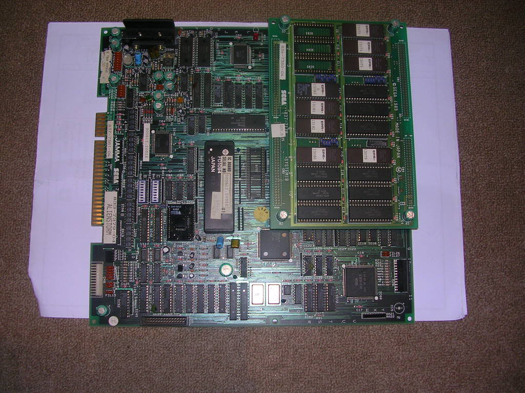 As it still had its encrypted battery backed FD1094 CPU block on the board the most likely cause for its odd behaviour was that the battery had finally given up after 22 years and the data in the decryption RAM contents were now lost. Fixing this is pretty easy these days, you just burn 2 new replacement EPROMs that contain the unencrypted CPU code and drop in a bog standard 10Mhz 68000 CPU to de-suicide it.