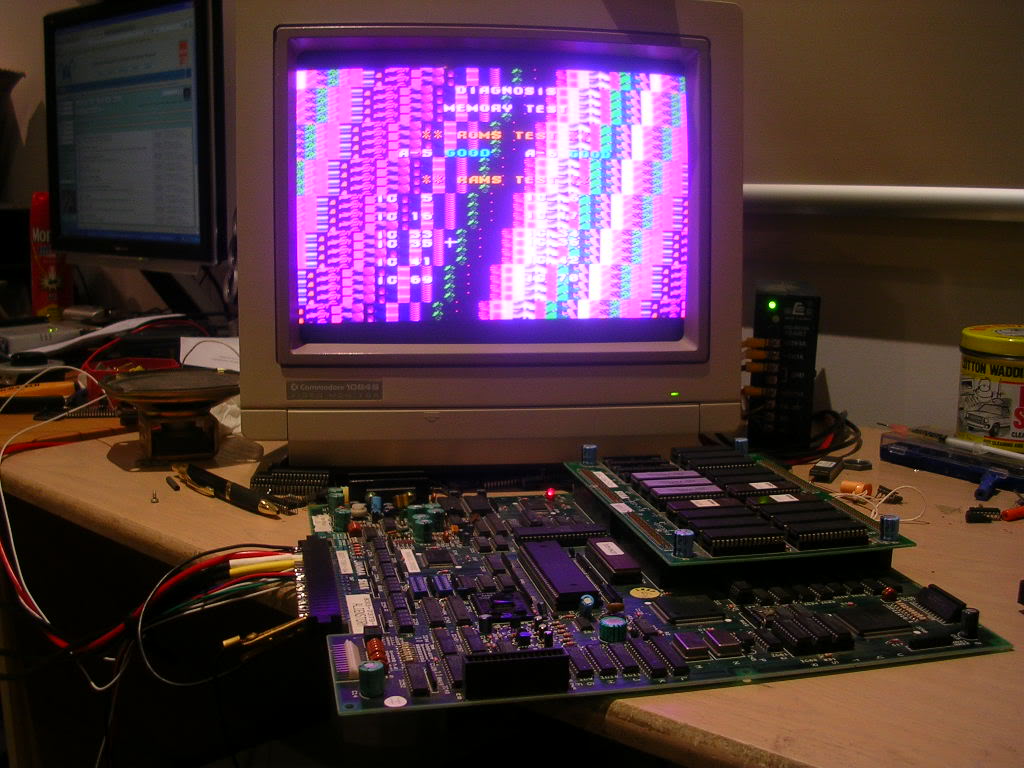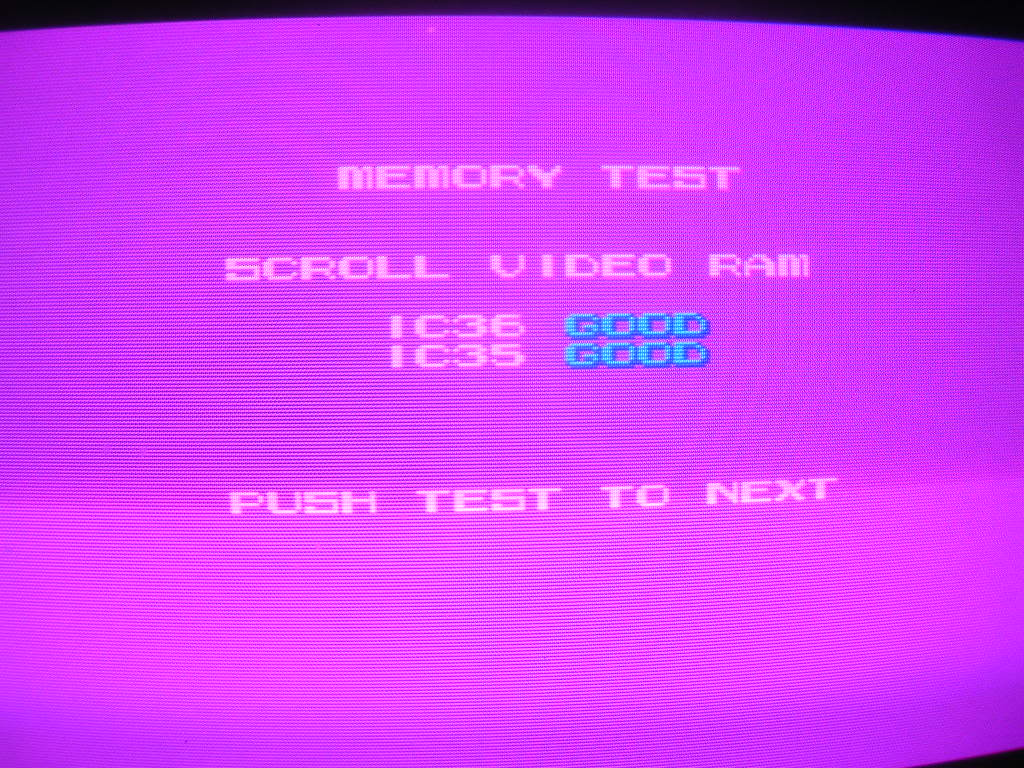 ... but the tests on this board are too quick to be overly in-depth, but I do have a Moonwalker ROM board that has a diagnostics mode that has a far longer set of tests. So I swapped the boards over, and the support MCU that Moonwalker needs and fired up the diagnostics...