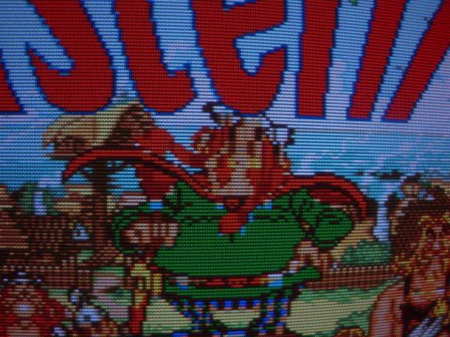 When 3K (board says bad, I say its good) is on the board and the other one is physically missing the graphics are much much tidier, a lot of the colour info is wrong but there are no sparklies and nothing looks corrupted, in fact the bits that were a mess on the splash screen originally are actually missing now which is a very good sign - the messy bits all travel with that mask rom!!
