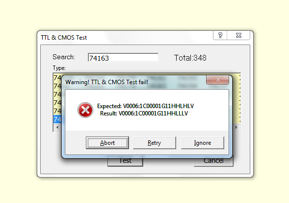 ... all outputs bad! Just to rule out the timing issue again I tested the other LS163s on the board and they all passed. So I de-soldered the original...