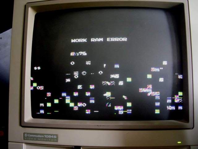 ...nice useful messaege "WORK RAM ERROR", except I had no idea where the Work RAM actually was on the board, only that it was mostly likely to be fairly close to the CPU. The closest was a block of 4 TMM2063 SRAM chips, a sort I have seen fail before.