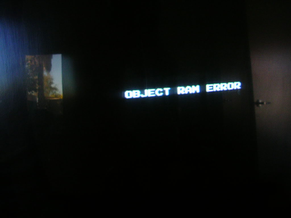 ...Object RAM Error - brilliant! So he didn't get to play it that day either. I set the dip-switch 3 on dip bank A to on as this selects the diagnostic mode in the hope of more specific tests but it didn't have any effect, the board just cycled giving the same error, time to whip it out of the cabinet.