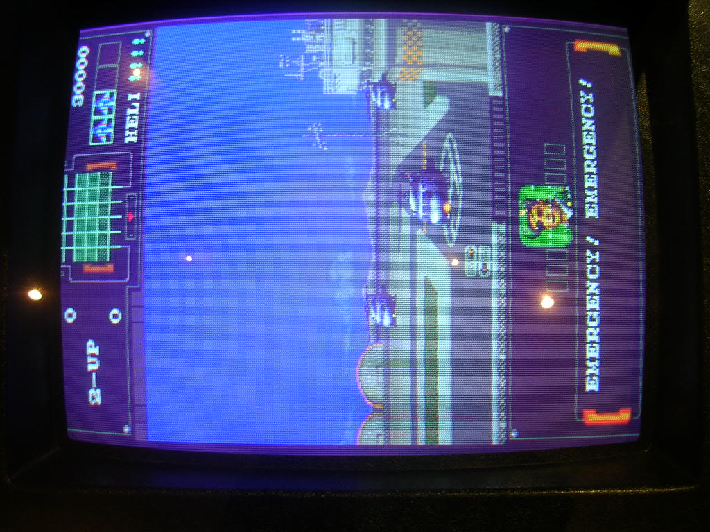 When I connected it up to my cabinet there was complete and total silence, not even the pop you get through the speakers when a game is powered up. It also had another fault, all the bullets and explosions were missing. For some reason this board really doesn't like my test bench monitor, or visa versa, so I had to take photos on the cab which isn't as easy.