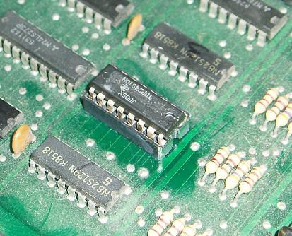 Looking over the board I found a chip at location 2D, a colour PROM, that had been desoldered and then placed back in the board, unsoldered, with a few legs bent over so it wouldn't fall out . The PROM was different than the others next to it, very suspicious. Not much I could do with it so fitted a socket and placed it back, hoping it would work.