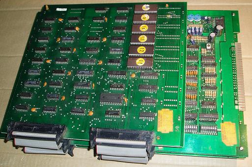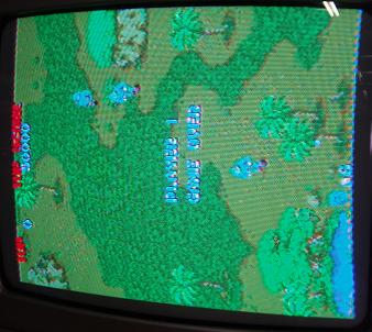 Here's a Commando bootleg pcb, a large 3 board stack pretty much the same layout as the original Capcom. It's a nice PCB to work on as the bottom board handles the sprites and the top board the backgrounds, makes it a bit easier to track down problems.