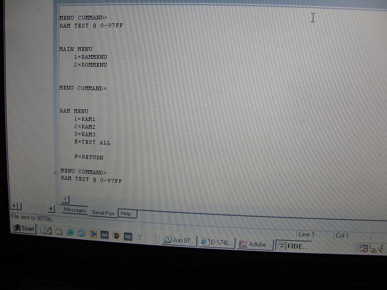 ...instructing it to test the RAM between 0000 and BFFF again, which is the extent of the RAM on this board - 48KB. It came back with this...