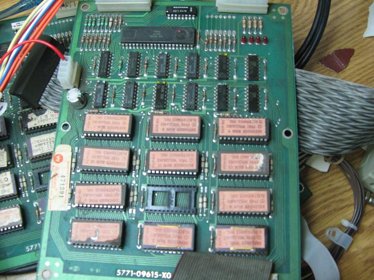 This didn't mean that the sockets on the Defender board are ok, just that any bad connection isn't likely to be on a power pin, but a single data pin with bad contact could still be causing the fault. The same applies to the CPU socket, the RAM sockets, and the video decode ROM socket, or the ribbon cables.