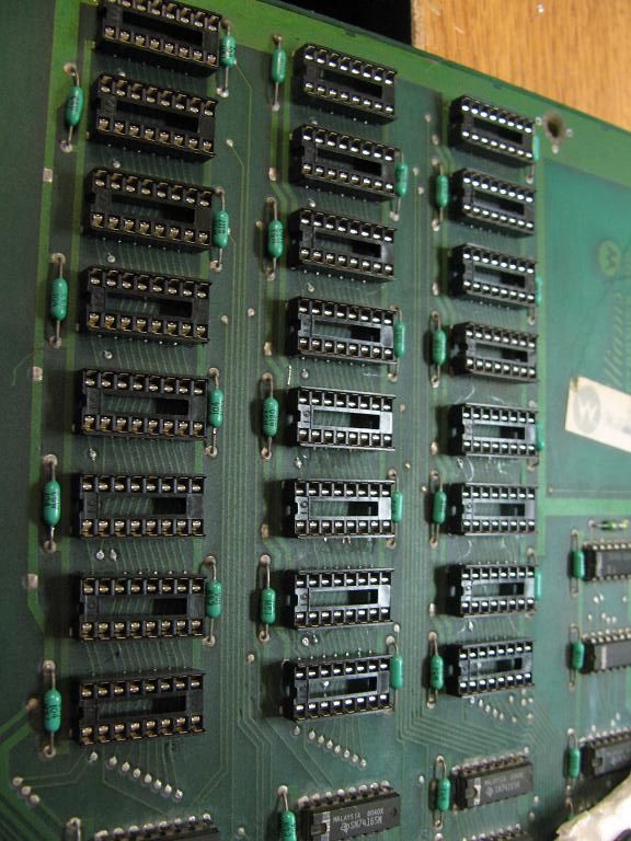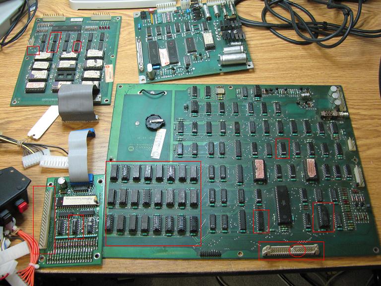 The build quality on early 80s gear is bad, really bad. Am not sure if this was just standard for the era, or if everything was done on the cheap. Boards 3 or 4 years younger are much better made. The problem is basically connectors, any joint on a conductor that is not soldered and relies on two bits of metal bring pressed together is a connector. So this means ribbon cables connectors, PCB edge connectors as well as IC sockets, all introduce points of weakness into a system and provide literally hundreds of possible points of failure on busy boards. Add in the early 80s fetish for having multiple boards and you have to have some way of connecting them all together. Defender has 4 boards, the CPU board that contains the CPU, the DRAM and the video generation circuitry. The ROM board that holds the game ROMs, the ROM paging logic and a controller that interfaces with the Audio board which has its own CPU, RAM, ROMs and amplifier. Then finally there is the I/O board which holds the logic and connection points for the controls and cabinet switches. All connected together with ribbons cables and peppered with sockets.Probably the biggest issue on these old boards are the sockets which in the early 80s means single wipe sockets. The contacts within the socket only press on one side of the IC leg, usually outwards trying to splay the legs of the chip. Over time these spring contacts either lose their spring or they end up pushing the chip legs apart to the point that the contact is only held together weakly. Modern sockets push on both the inner and outer sides of the chip leg, make better contact and prevent leg creep.