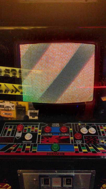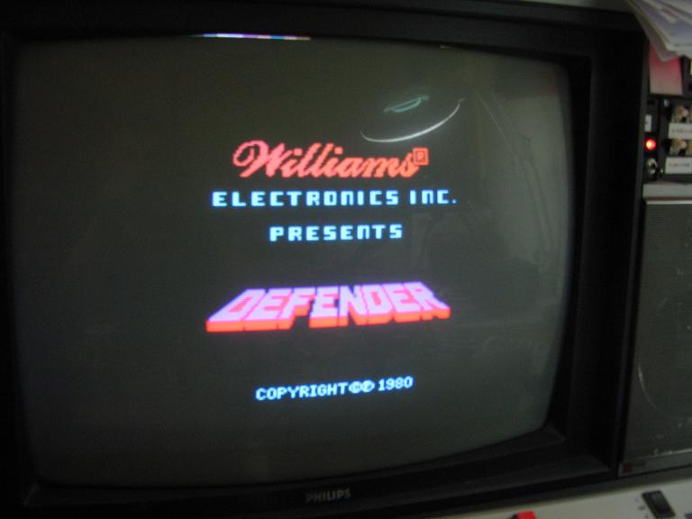 ...a frozen screen of crap, not even a frozen "rug". A healthy defender board does a RAM, ROM and CMOS RAM test on power up during which it displays a dark red speckled screen that is called the "rug", a band should sweep across the screen twice from left to right, followed by a brief pause and the results of the test.