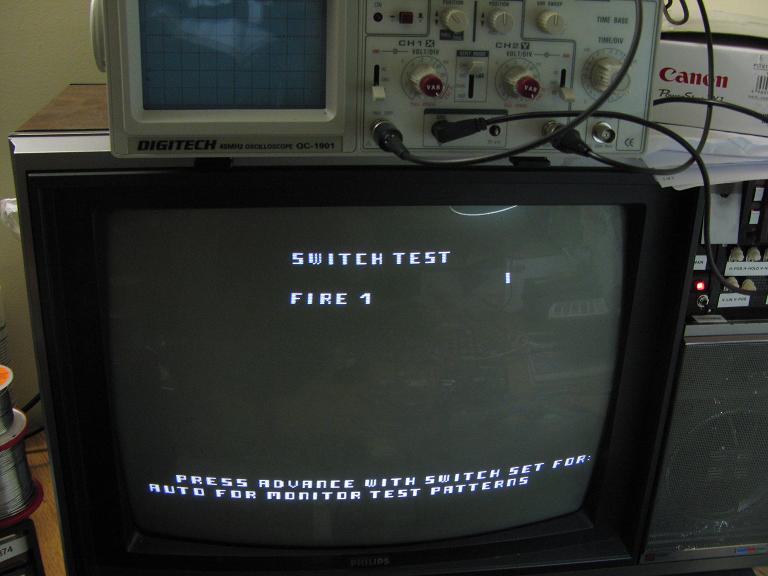 The game now saves and exits from bookkeeping and the game demo starts. I coined a game up but nothing happened. Random mashing of buttons proved that some signals were getting through but clearly not the way its supposed to be. Using the setup buttons I progressed to the input test.