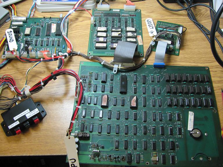 To add to what Gamedude has said 95% of the problems with these boards are the 4116 and their crappy sockets. another common problem is the interconnect header pins between the rom and I/O boards. On my stargate I've done a mod to do away with those shitty 4116 rams which require 12, 5 and -5 volts to work with 41256 or 4164 rams which only use 5. Rams run much cooler and will guarantee long life, also modified the sound board to take 2732's instead of those hard to get 2532s. Its always best to have a working set along side, saves so much time and worry, Stargate, Joust and Robotron probably me fav games.