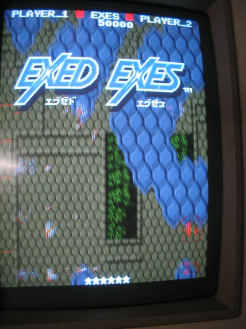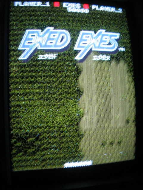 Problem: Found another graphics problem. The lower background was slightly messed up(see pics) fix was a 74ls74@N1. Just found one last small fault. In the large sprites eg: big explosion when your ship dies and the big strawberry had a small black line through them. Fix: Dead output on a 74ls283 @ F12 pin 4