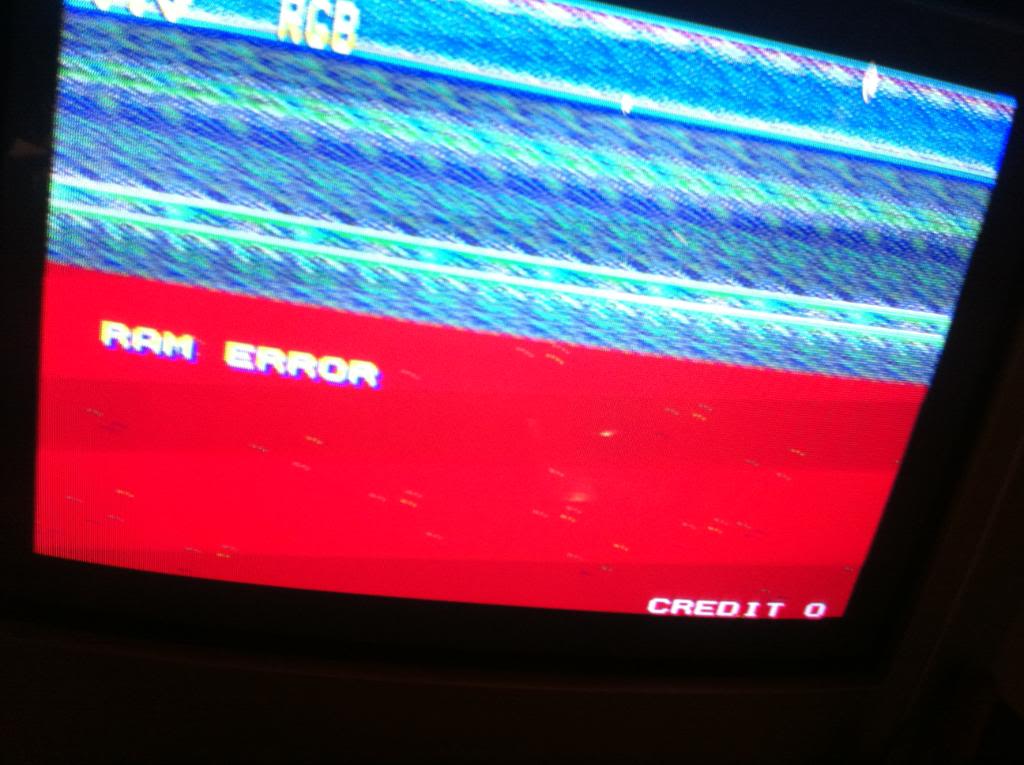 Okay, so started with the RAMs on the secondary board, as this is usually this one that handles graphics. Started by shortening adjacent address and data pins on the different RAMs observing the screen. That way I found RAMs used for colour, backgrounds, and texts, but no sprites. Well it turned out, that the sprite RAMs were on the main board after all.