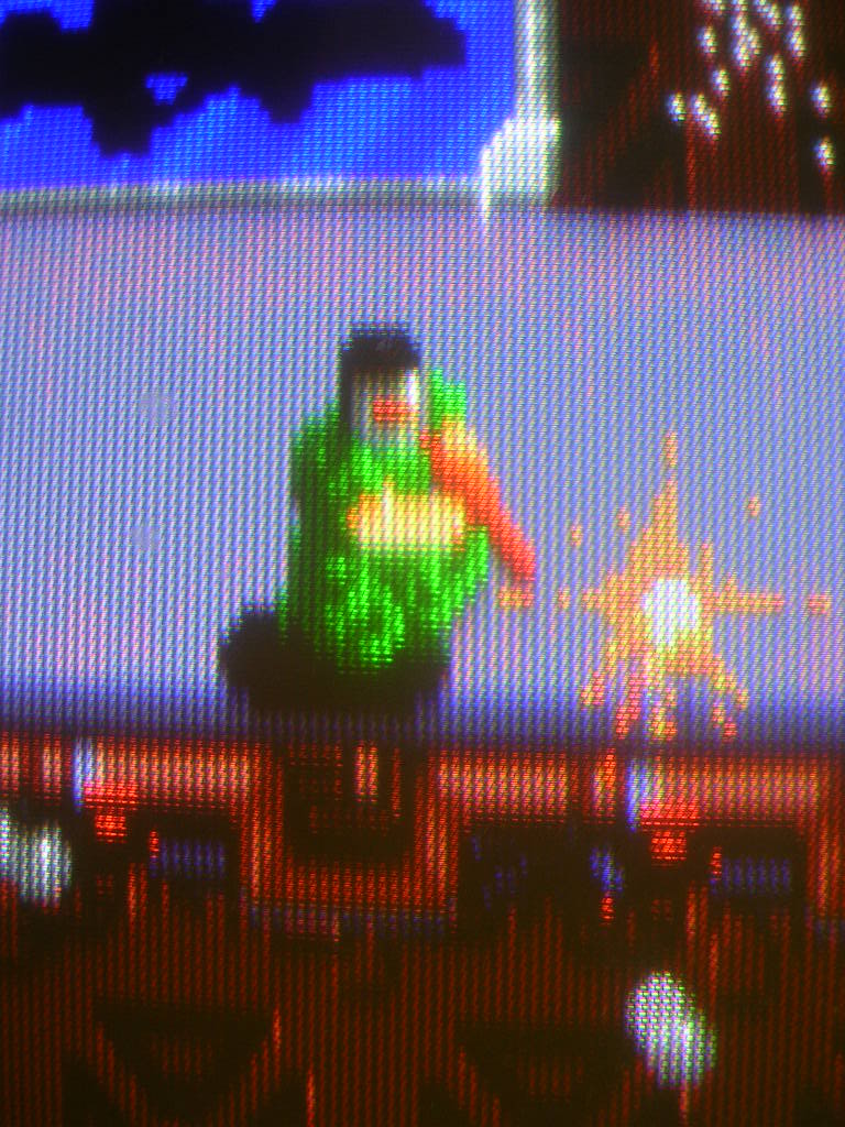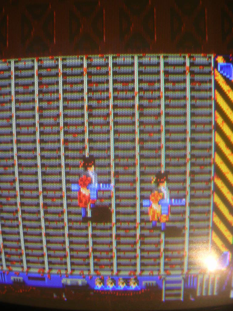The collection of junk on the metal platform is supposed to be P1 and P2 character sprites.