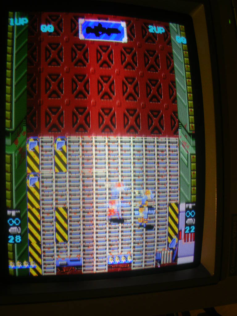 I sniped this on eBay recently, apologies if it was an AA'er who I beat, am amazed I got it as I was bidding via an iPhone app and I had to manually enter another bid with 3 seconds to go. I mainly grabbed it as it is another Data East rotary joystick shooter much in the same theme as Midnight Resistance. Whereas MidRes is a horizontal side-on shooter, Heavy Barrel is a vertical top down shooter but a number of elements graphically are the same as MidRes, that and the fact the board looked mint and I do like Data East boards.