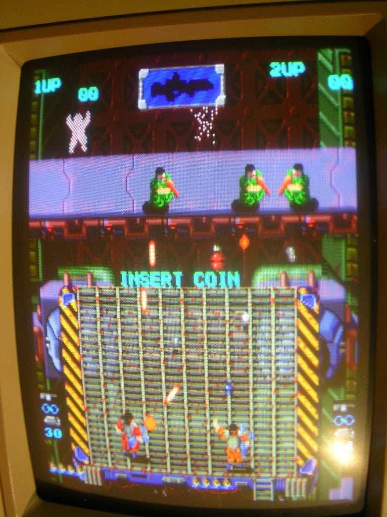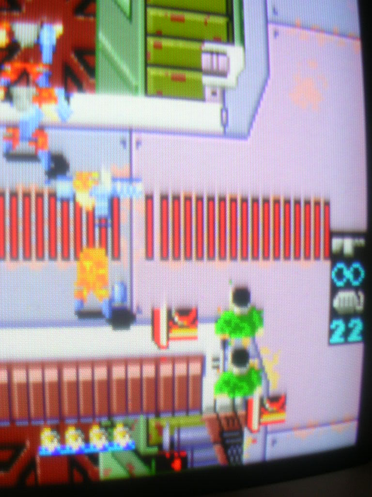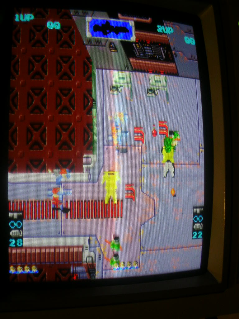 The enemies were mostly collections of green shoulders and heads, Player 1 is the collection of crap in the top left hand corner.