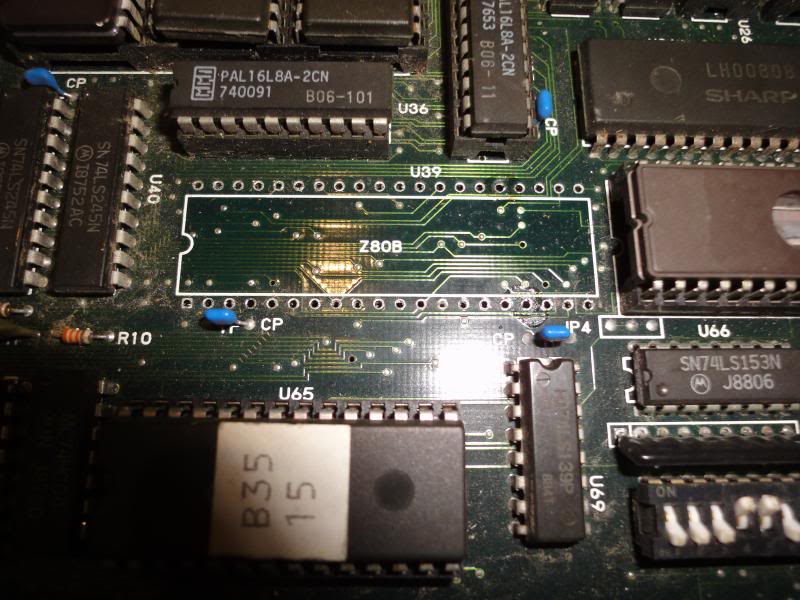 So I fitted a 40 pin socket and dropped in a working Z80-B chip, powered it up and the board booted!