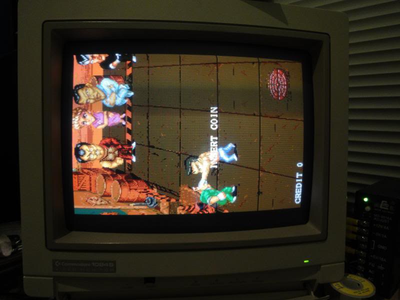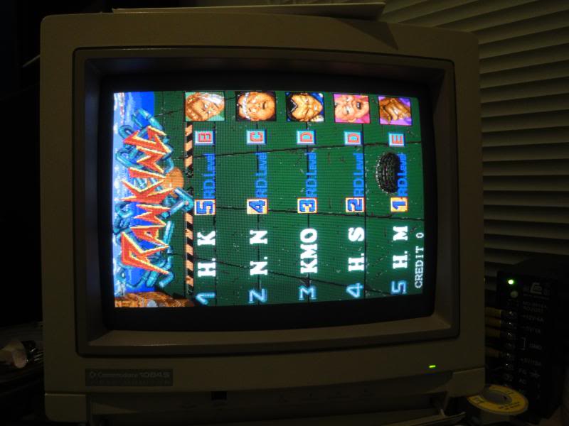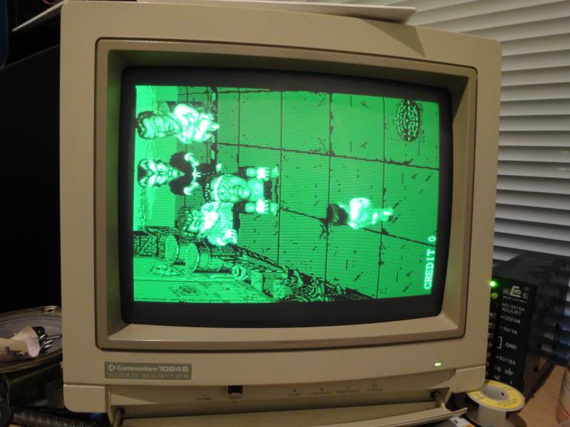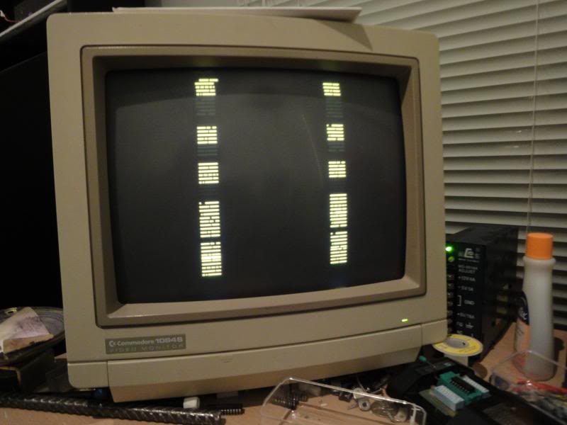 Anyway - fired it up and got a blank screen with scrolling patterns of yellow lines, this was actually a good sign as it suggested the video generation portion of the board was still alive and kicking, just that it was being fed crap, probably.