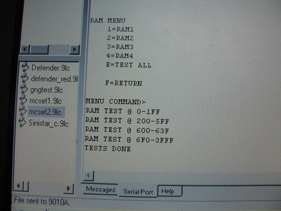 Decided to stick it on the fluke to see what was happening, system bus test OK but RAM and ROM test returned instant failures. Since the bus test was OK I moved onto the memory address decoders and probed around the associated IC's. The 7442 at N2 was not outputing on any output so I piggybacked a 74LS42 and BINGO! the MISSILE COMMAND attract screen came up.