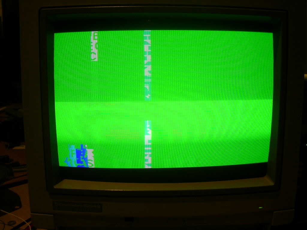 ... not the 4-5 volts you would expect. As it was not totally silent there was clearly something on the line trying to drive it but not doing very well. In cases like this often you find the line is missing its pull up resistor, or the line driver is dying. None of the data lines seemed to have any connection to the resistor networks so the next obvious place to look was the CPU itself as some do provide built in pull ups, D0-D14 were all connected through to the 68000, D15 wasn't. Again the tracks looked perfect so I have no idea where the break was, so another length of hookup wire was installed, just a big temporary loop at this stage as routing this one would take some time.