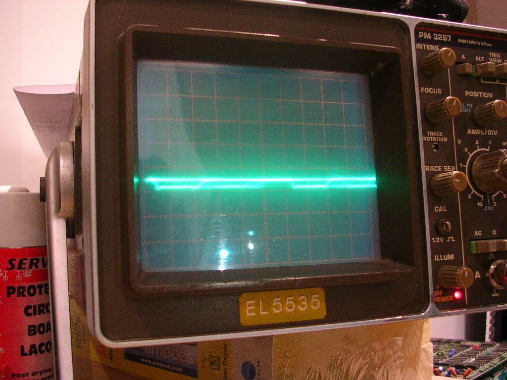 So the next best thing was to grab the NeoGeo slot pinout and poke the scope at the the address and data bus lines in the game cart socket itself. Needless to say everything looked normal, all through the address bus, and all the way from D0-D14, at D15 however things were not normal.
