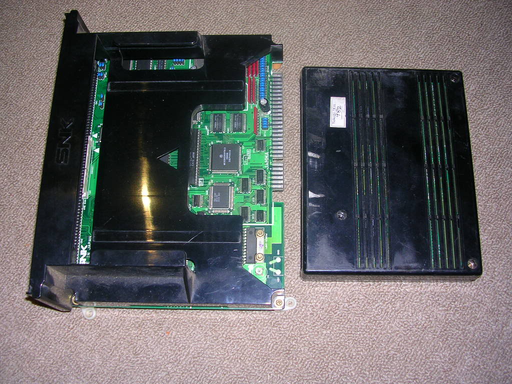 Snapped up a faulty NeoGeo motherboard and a Metal Slug cart a few days ago, it turned out to be one of the really small MV1FZ boards, barely larger than a game cartridge itself.