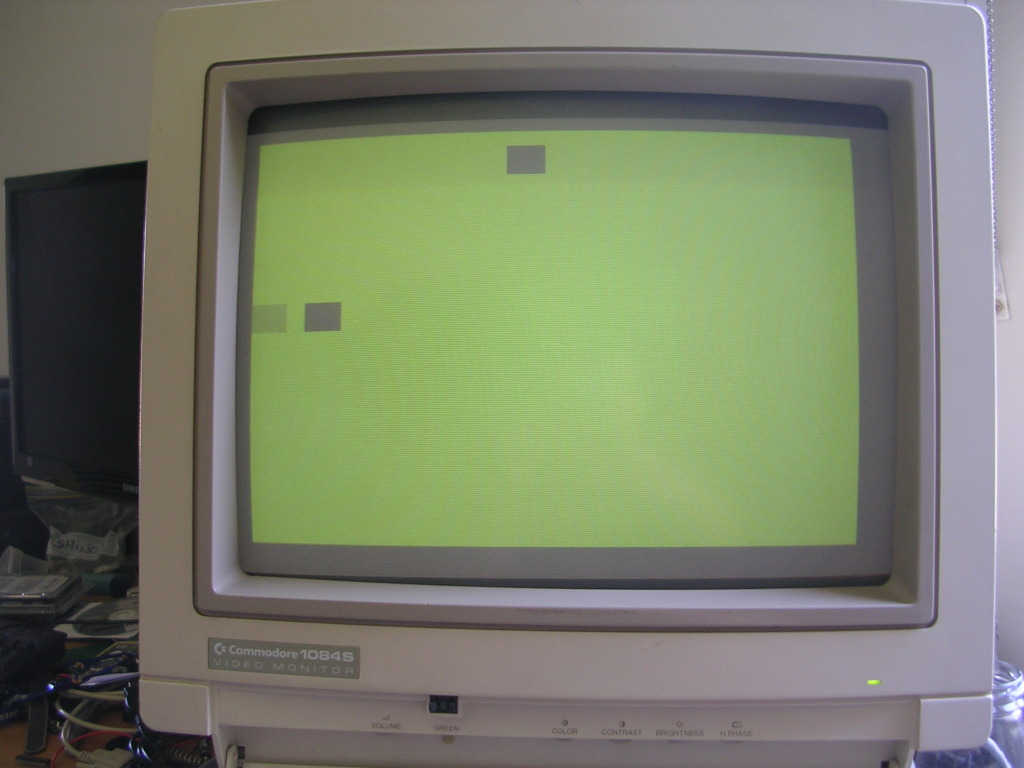 Nothing changed, the bouncing was still there, the colours were not great and the screen was flickery, this was good news. If the chip was doing something then the board should behave differently when it was physically removed. This suggested that the crap colours and flickering are what the board does when one RAM chip is missing, either physically missing, or still there but knackered.