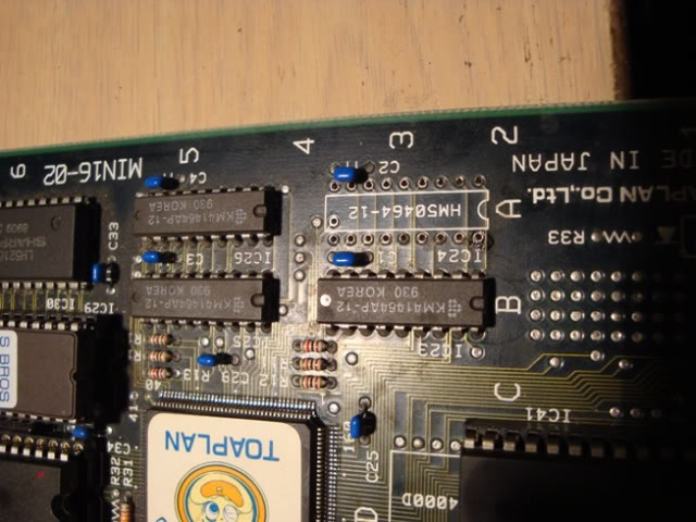 The bouncing logic issues have gone away too, I can only guess the board strobes through each chip in turn and the lack of a working chip at that location causes major instability, am surprised that it affects most of the board though, it can't be a short in the chip from the CAS or RAS signal as the instability was there when the chip wasn't