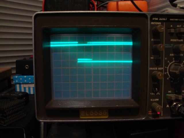 Each chip has 4 output pins and on boards that show this fault you will find one with its outputs stone dead, working along the chips with the scope I started with IC26, all its output pins looked like this...