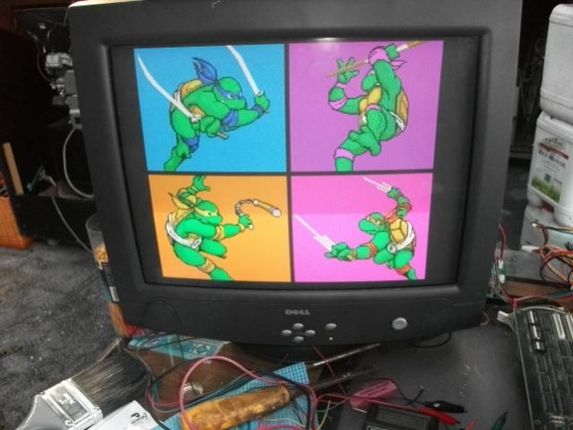 Problem: I noticed below the manhole in the intro it was casting a purple shadow and the turtles when they came out of it were mostly red! Resetting the board I now get a ram error F23 BAD.