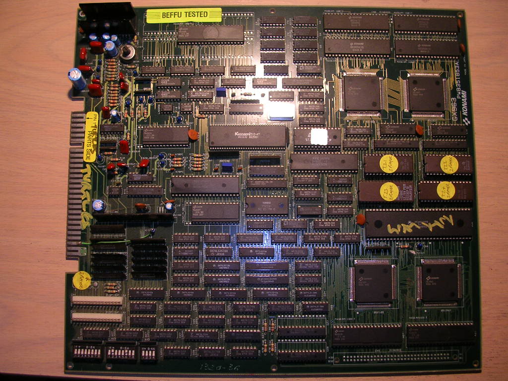 The board was totally untouched, beyond the fact the EPROMs had been swapped to change the game version. There wasnt a non-original solder joint on the board, but it was stone dead. My work bench had been offline for a while so I had tested it in my JAMMA cabinet, and it was very dead, not even a pop from the speaker on power up just a blank screen.