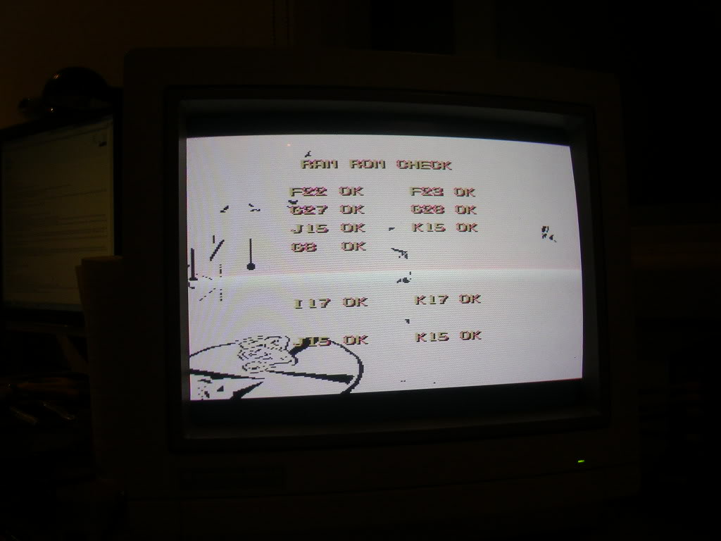 The time so I put the PCB to one side. 3 or 4 months later I turned it on again and it had rows of zeros all over the screen in vertical columns. You could see in the background bad ram error.