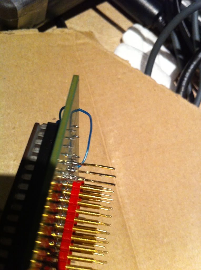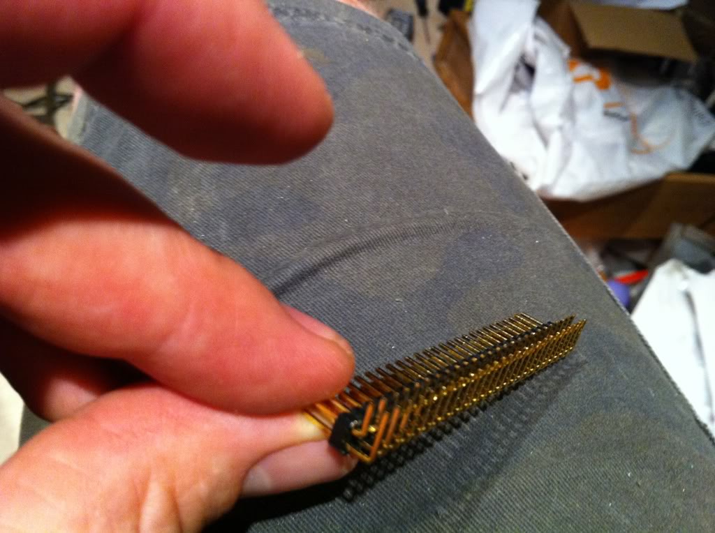 I straightened 3 of them out and pulled them out of the socket. Cleaned the holes on the sub board, soldered them in, and cut them down to the right lenght.