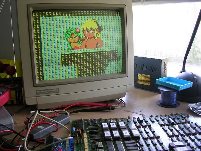Replacing this chip had a dramatic effect, the colours of the landscape were suddenly correct, Wonderboy himself was back in the foreground again and rock solid again, the splash screen background was also the correct colour.