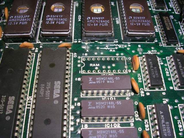 Symptom: Using the Fluke, test main or sprite RAM – there’s a R/W Error at the starting address BTS 40 (original Sega single board) Cure: Bad LS245 at location IC125