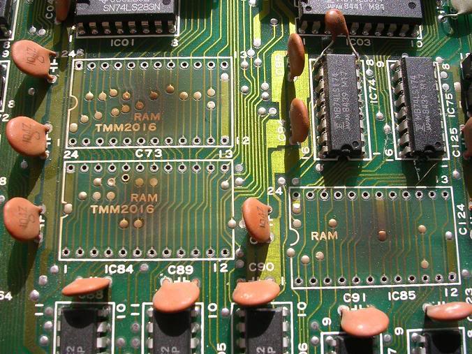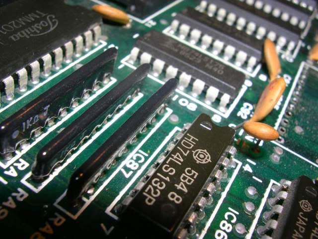 The board was in good nick, a couple of chips had been replaced by Gt-ray himself in an attempt to fix the board. The chips replaced were ones I had found to be faulty in previous repairs. This approach is not likely to lead to success as there are many chips involved in any single thing you see on the screen, so even if the fault is similar the chances the exact same chip is the cause is pretty low.