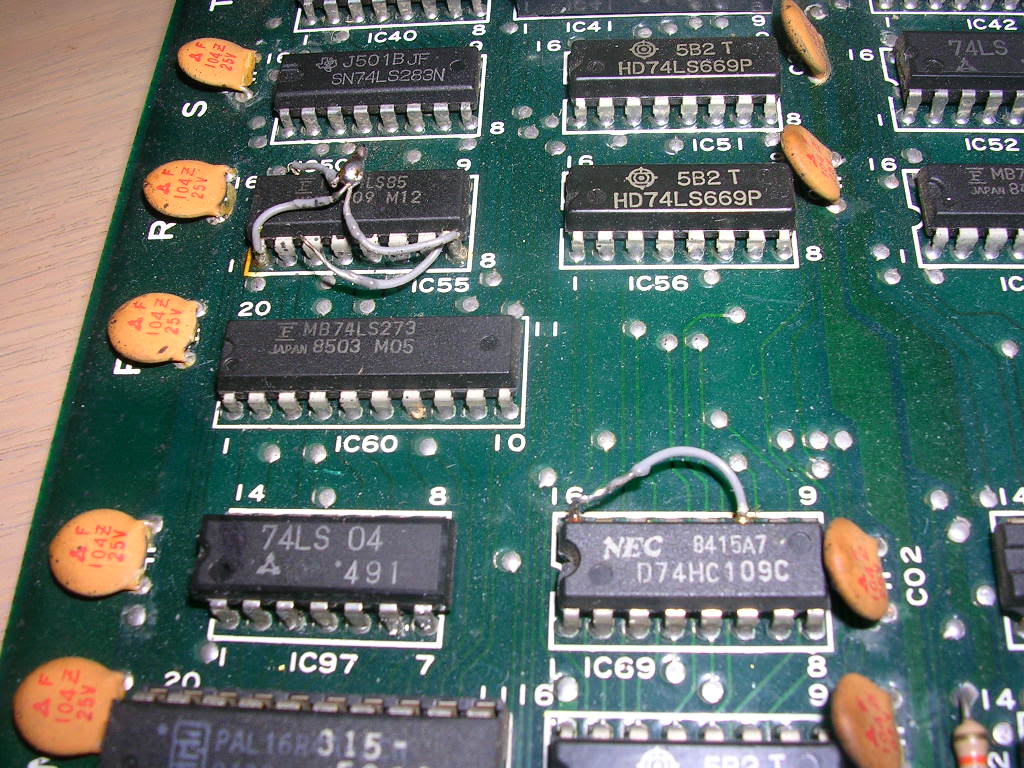 As the board was back in good health I removed the weird wire link on the the 74HS109 chip to see what affect it would have - absolutely nothing, so it stayed off.