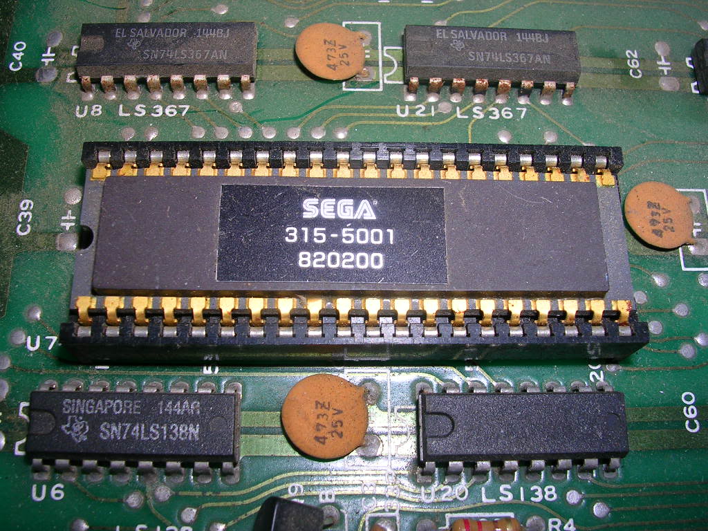 ... a three PCB stack with an unusual thin ribbon cable connecting the top board. It was in pretty good nick with a few nice original features, like the original Sega branded Z80 hidden away under the upper board...